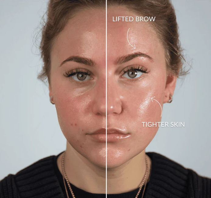 Firms and tightens skin for radiance. Creates a visibly lifted, sculpted appearance, enhancing facial structure.
